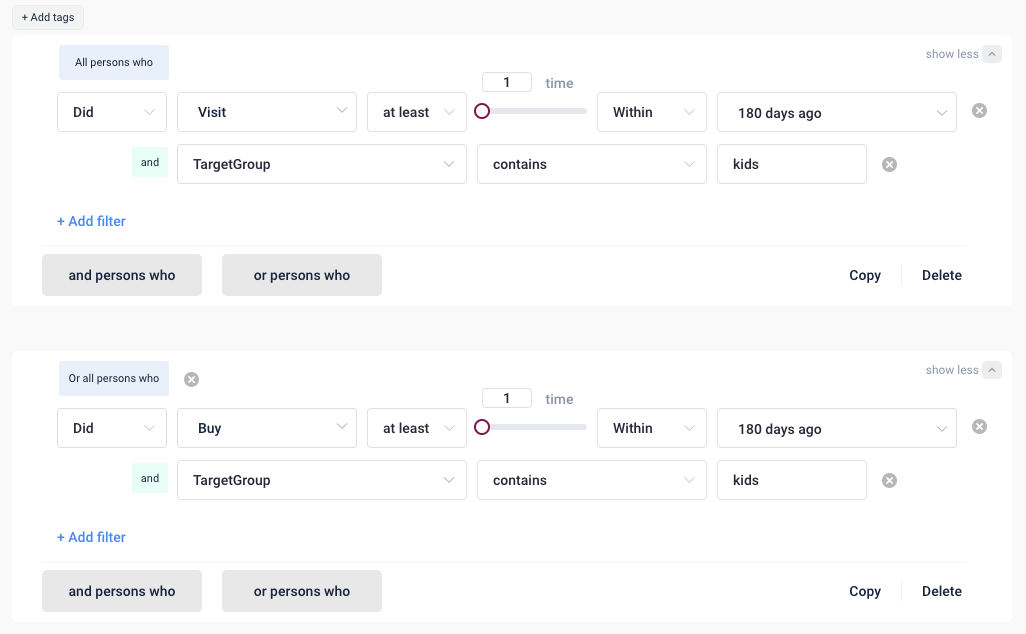 - Advanced segmentation features that include automated segment discovery or propensity models