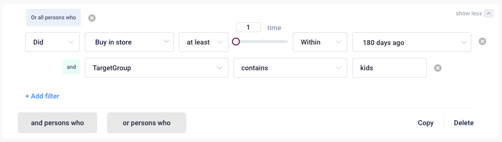 The Raptor audience builder provides operational access to the Customer Data Platform. This is where strategic business logics is incorporated and defined by available customer data from various channels.